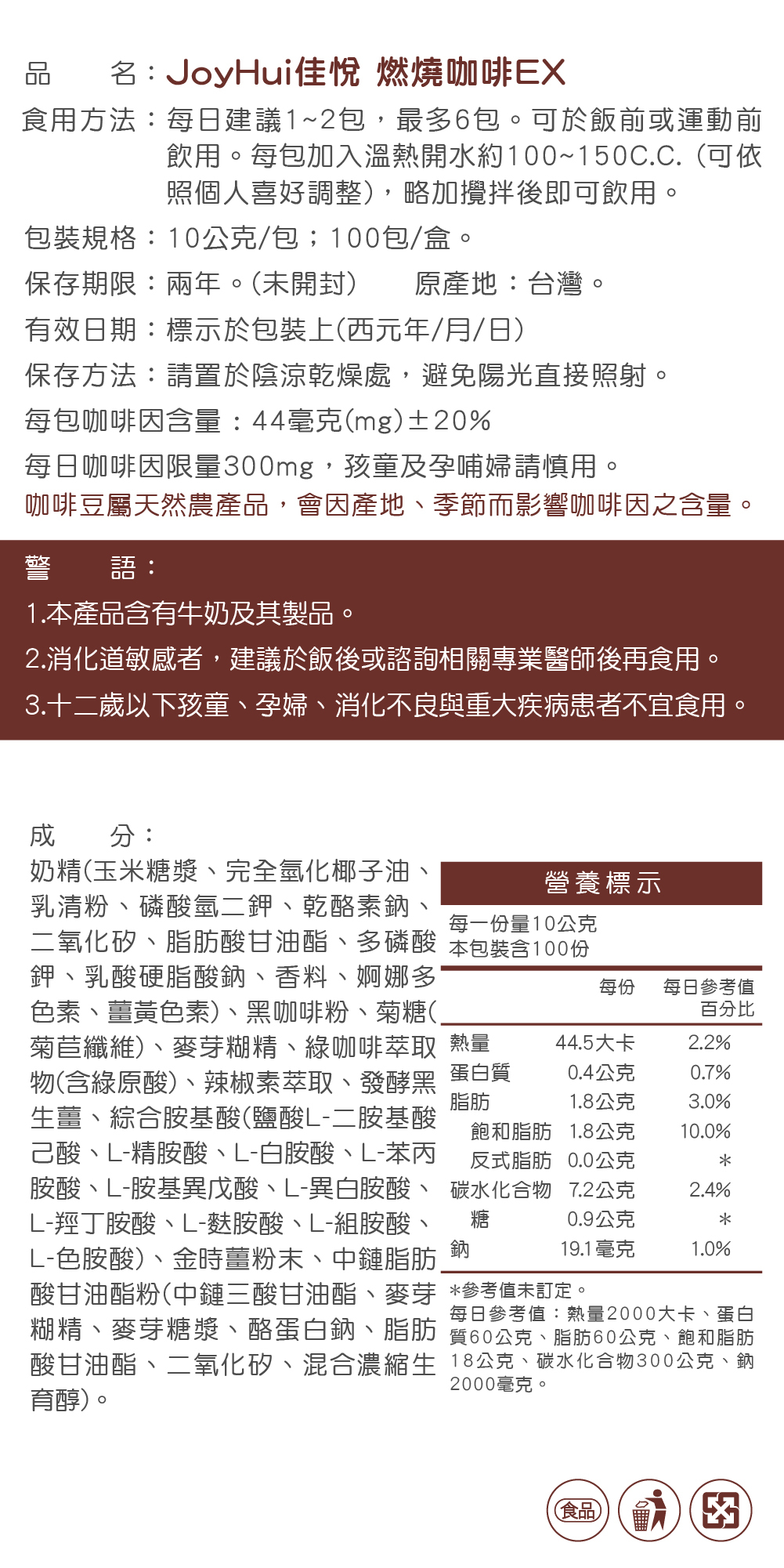 品 名:JoyHui佳悅 燃燒咖啡EX