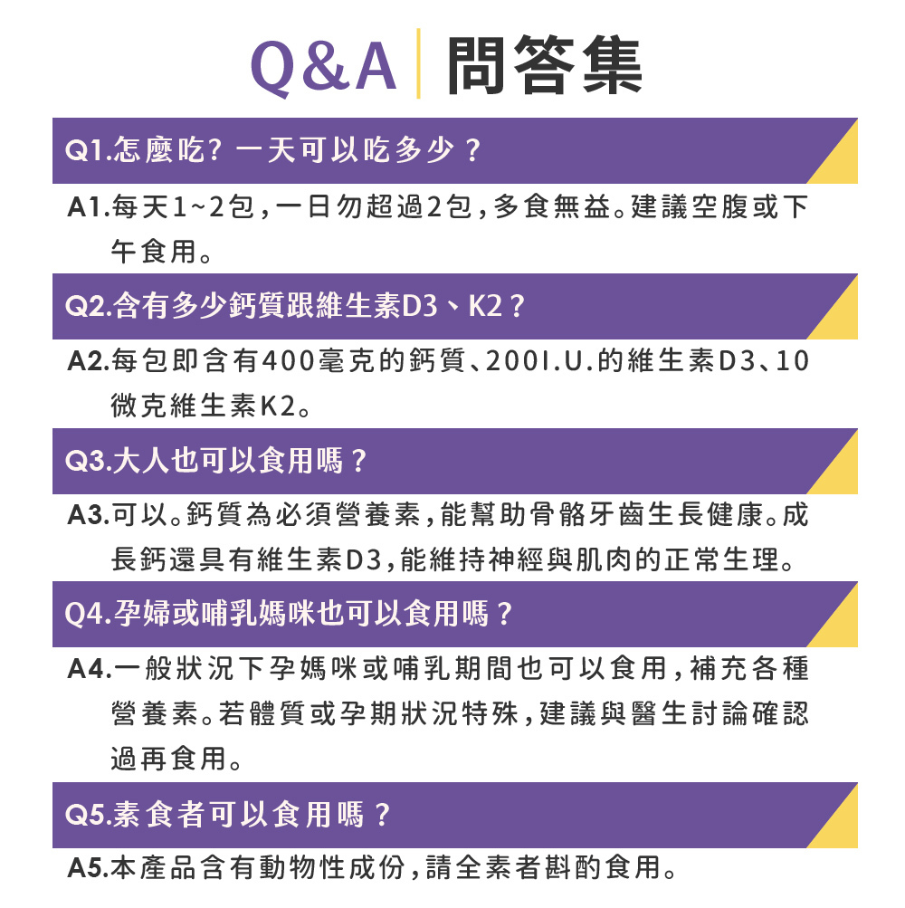 ◆每包添加高單位400毫克鈣質+200IU維生素D3