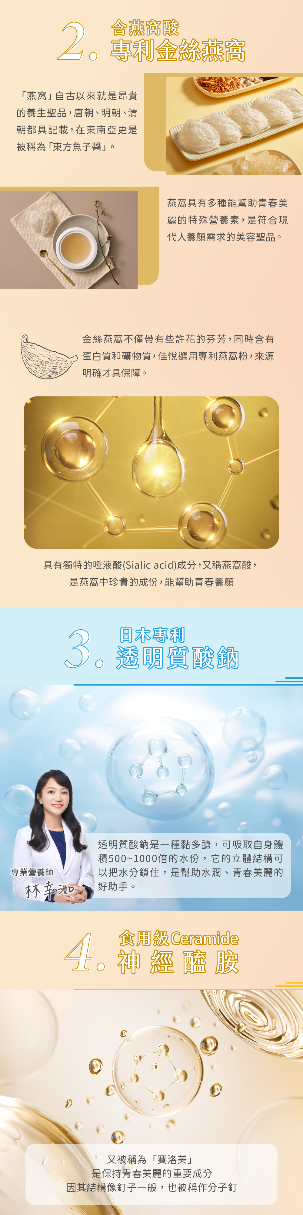 佳悅選擇荷蘭草飼牛乳萃取神經醯胺,好吸收、幫助補充美麗養分,幫助光彩。