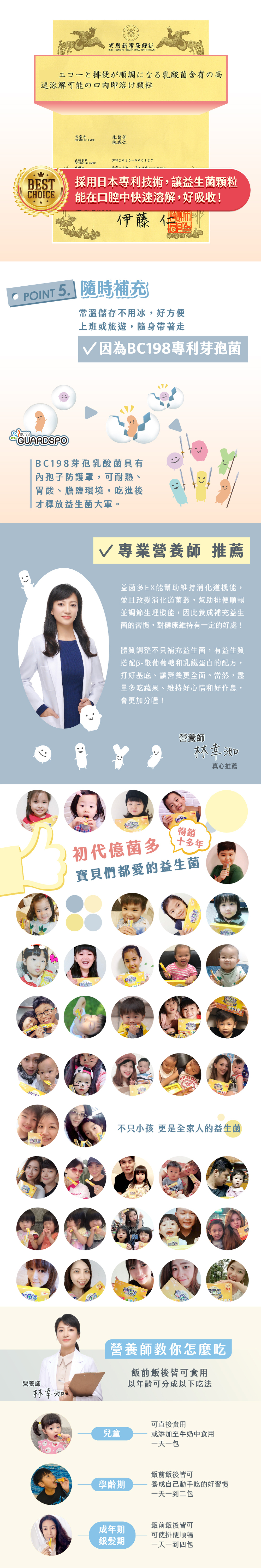 ☆BC198專利芽孢乳酸菌,獲原廠LOGO授權,安心有保障