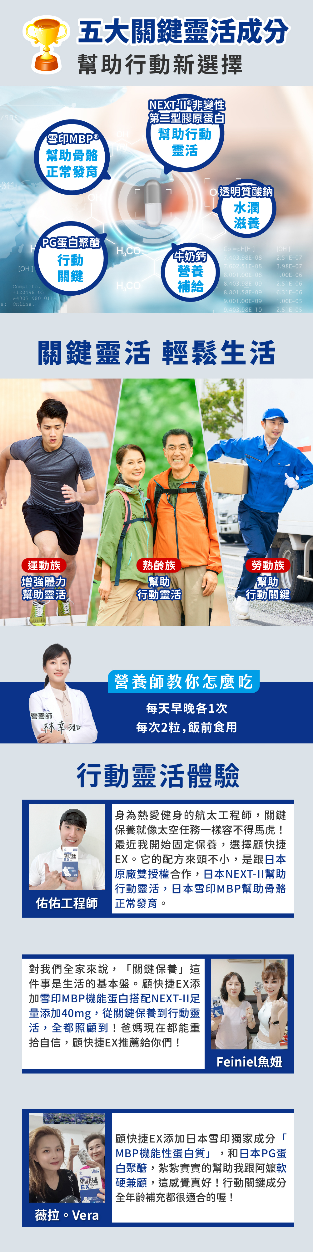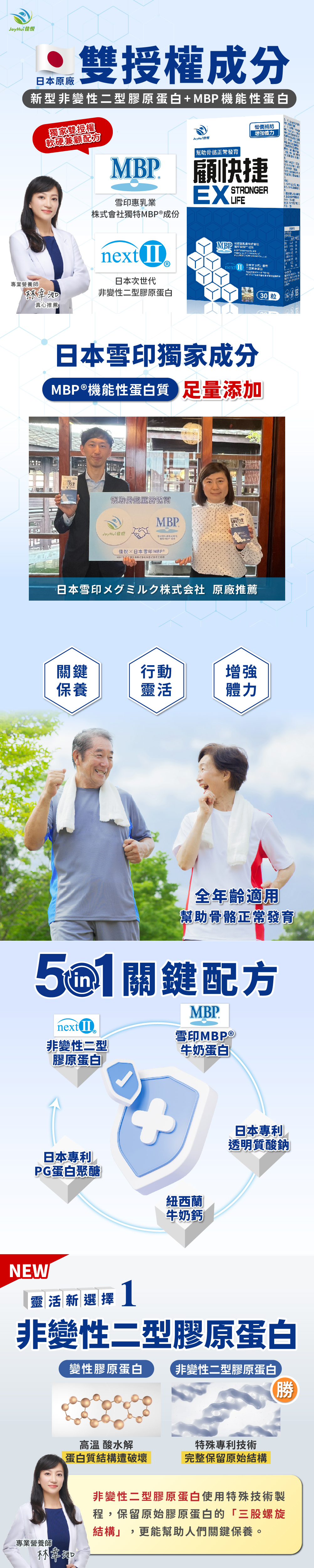 顧快捷EX具有日本雙專利授權成分+5合1關鍵保養配方,幫助關鍵靈活、讓你輕鬆生活!