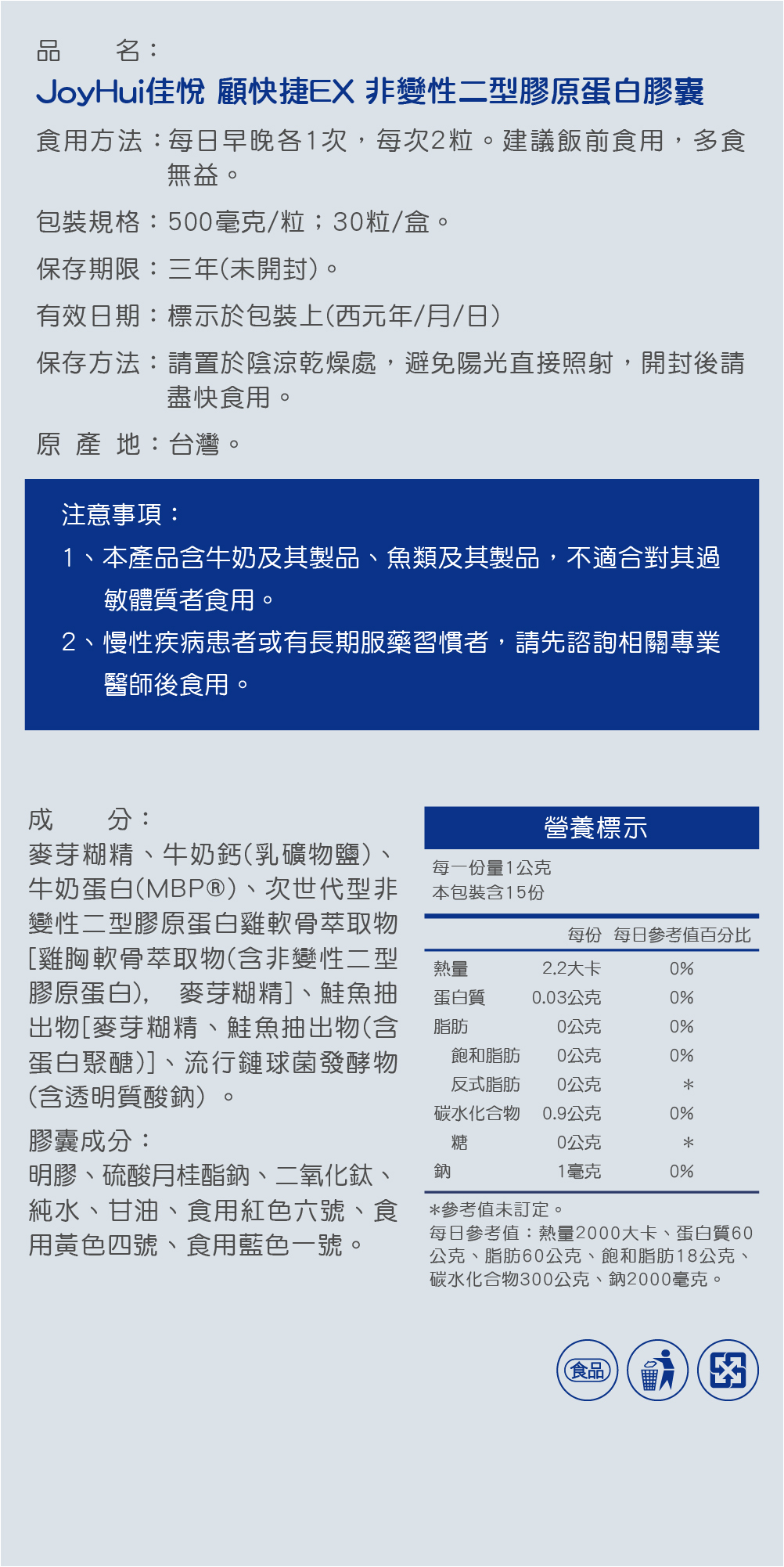 品 名:JoyHui佳悅顧快捷EX 非變性二型膠原蛋白膠囊