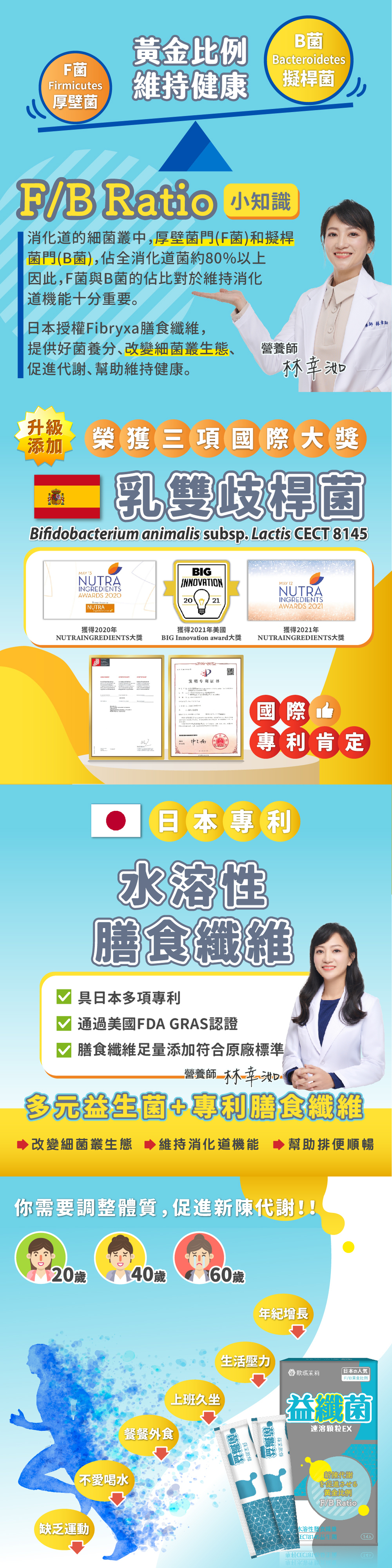 ◆F/B Ratio黃金比例,打造優質的益生菌環境